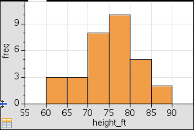 The graph below displays the heights of cherry trees in a park in Washington DC. The first bin width is [60,65).Height of Cherry Trees
