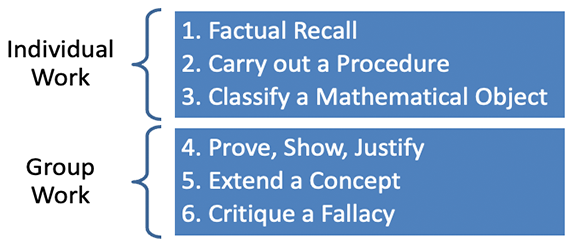 A Mixed Six is basically a mathematical task design using Pointon’s and Sangwin’s question taxonomy to develop thinking skills. I did a little research, and I was excited to see that much of the discussion and research was centered about first year calculus and helping students develop thinking skills in mathematics. (Download the research document.)