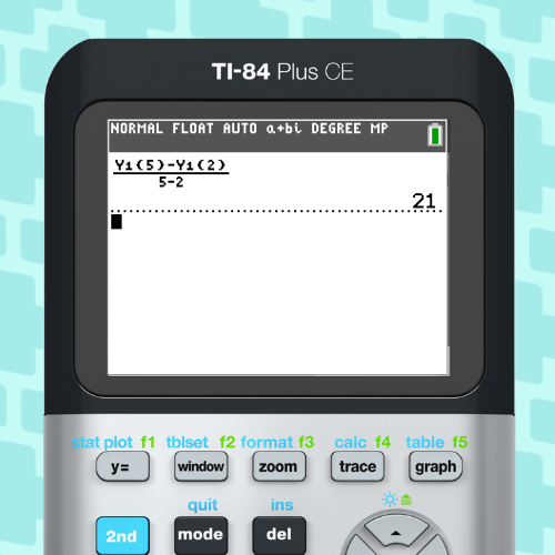 I also love using the Y-VARS feature to calculate the average rate of change over a particular interval. It allows students to see the slope formula in action! To all you precalculus and calculus teachers, you might like this tip too. Check out the equation below.