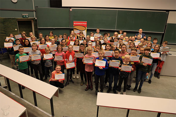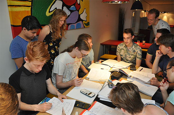 In de bovenbouw kunnen leerlingen met hun einduitslag een bonuspunt verdienen. Dat helpt dus wel om er gemotiveerd in te gaan. En, lacht de coördinator, “we zijn wel eens mooi verrast door een leerling! Zo had ik op de havo een verlegen jongen die het heel goed deed op de Biologie Olympiade, hij werd derde van Nederland. Het verbaasde hem zelf ook, en zo zijn er wel meer leerlingen die door deelname ontdekken hoe goed ze zijn. Deze jongen besloot na zijn prestatie om biologie-examen op vwo-niveau te doen en later verder te gaan met vwo. Wij hebben nu een succesvolle groep leerlingen bij de Wiskunde Olympiade, die zouden ons ook zomaar kunnen verrassen!”