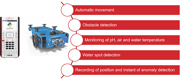 Om het behapbaar te maken was het project opgedeeld in verschillende deelprojecten. Allereerst richtten de leerlingen, die zichzelf het OJ-(clean)POWER-team noemden, zich op het opsporen van vervuiling. "De RGB LED-sensor van de Rover moest knipperen als een vreemde kleur werd gezien die zou kunnen wijzen op vervuiling. Zo maakten ze een controle-instrument om de kwaliteit van het water te onderzoeken. Daarnaast gebruikten ze de afstandssensor om obstakels te ontwijken. Om dit allemaal voor elkaar te krijgen programmeerden de leerlingen in Python met hun TI-Nspire™ CX II-T handhelds en software. Verder gebruikten ze Vernier-sensoren om de pH en de temperatuur te meten en te bekijken hoe de waarden in de loop van de tijd veranderden.”
